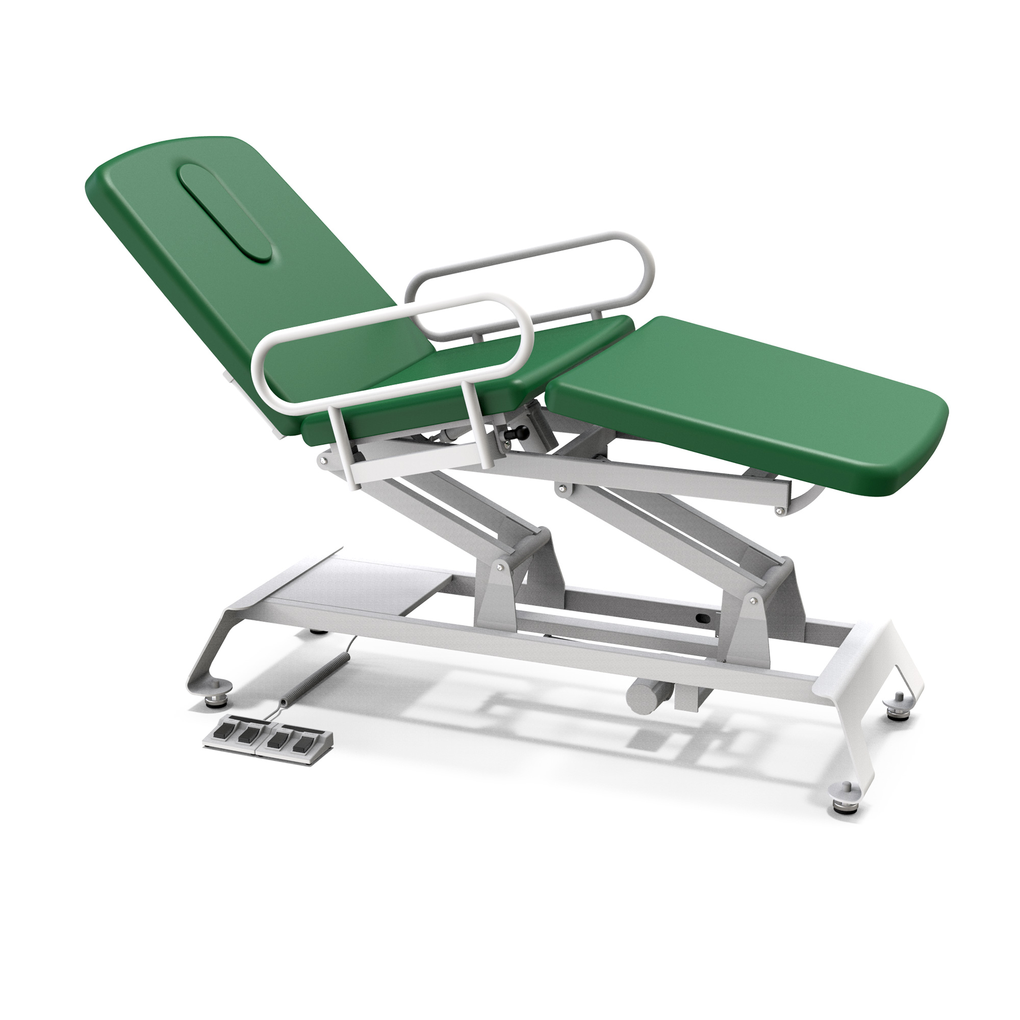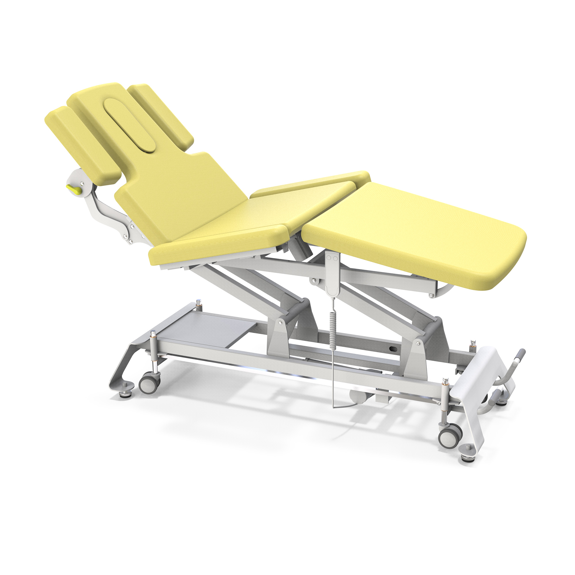 This CTA electric treatment table with 3 sections and 2 electric motors allows for many configurations. The central fold, adjustable by electric motor,