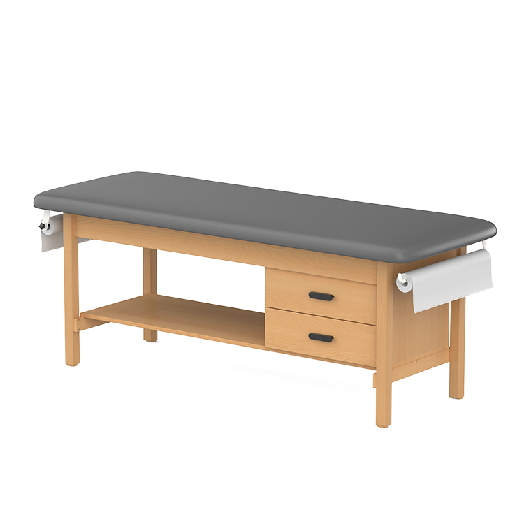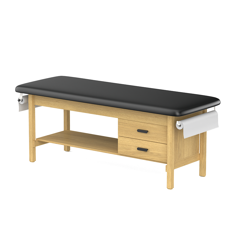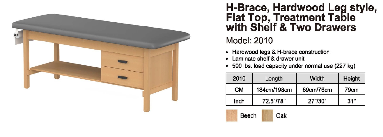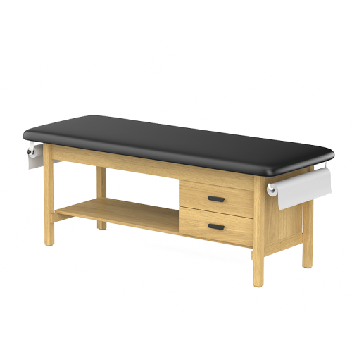 CLINIC-2 SERIES HARDWOOD LEG SUPPORT TREATMENT TABLES WITH SHELF & DRAWERS