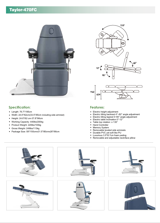 Electric Beauty Bed Exam Chair Gynecology GYN Chair Taylor-470FC