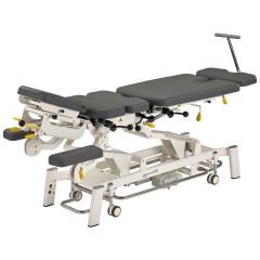 Fairworth-380 is a full-function powerlift height adjustable flexion, traction and drop table, equipped with manual lumber vertical lateral mechanism, and flexion manual lumbar traction mechanism, manual head traction mechanism and