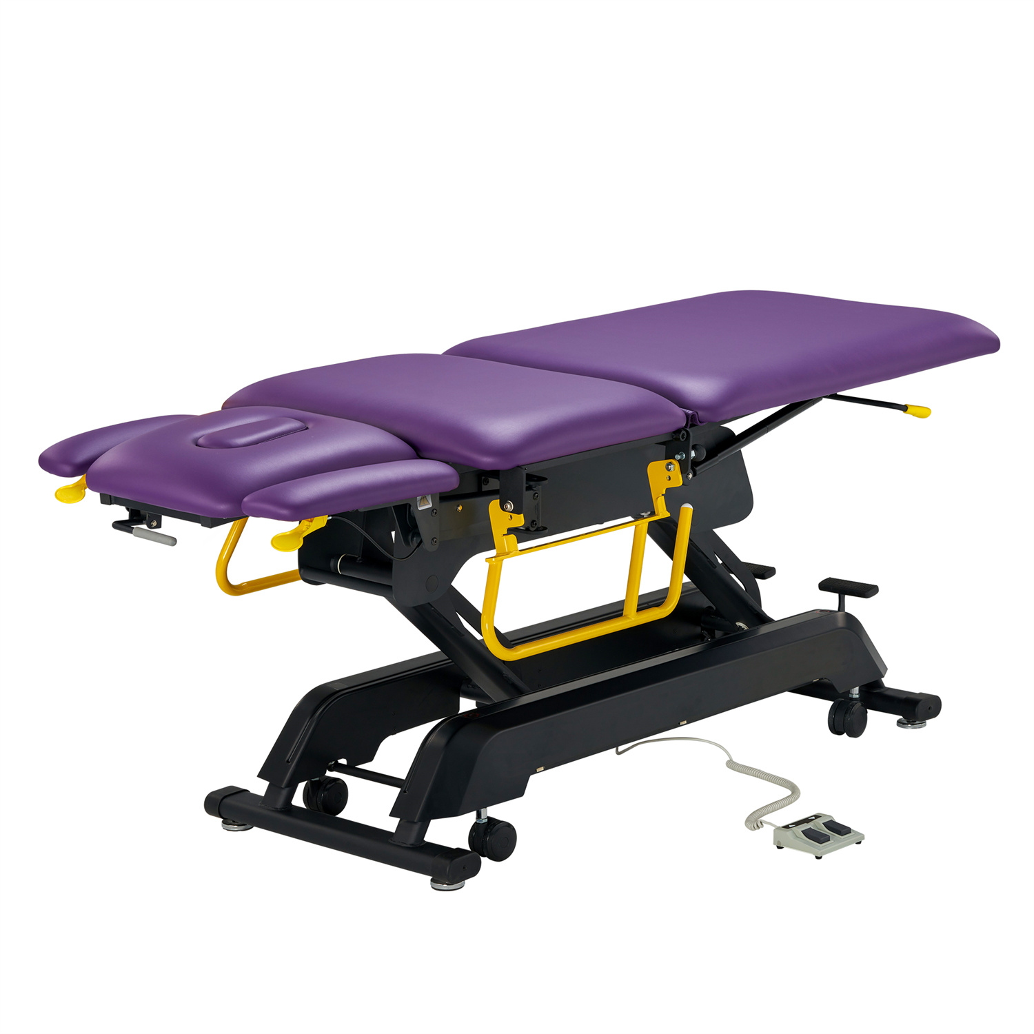 Premier Cabell treatment table supports multiple posture adjustments. A double-sided synchronous pneumatic control of the tail-adjustment mechanism makes it more sturdy, and achieves quiet and fast adjustment.The negative-angle tail adjustment function is