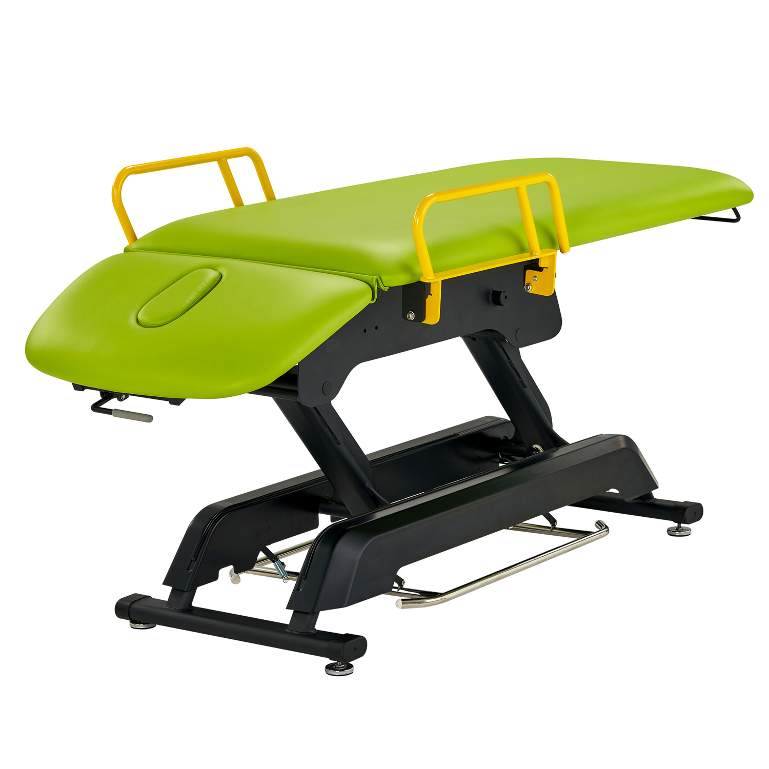 Premier Basic medical bed is mainly used for medical examination and treatment. It has a two-section table top, and the pneumatic controlled head section can rotate up and down in a range of 30 ° ~ - 70 ° . Its extremely low minimum-height and quiet elect