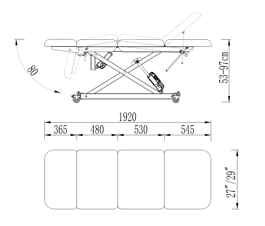 The electric Mid-Lift & Tail-Lift functions can be used as a stretching tool to stretch the lower back and clients side allowing the therapist to perform a greater range of treatments.